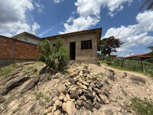 Casa sem acabamento, está toda chapiscada, por dentro e por fora, com laje e contra piso, com portas e janelas.